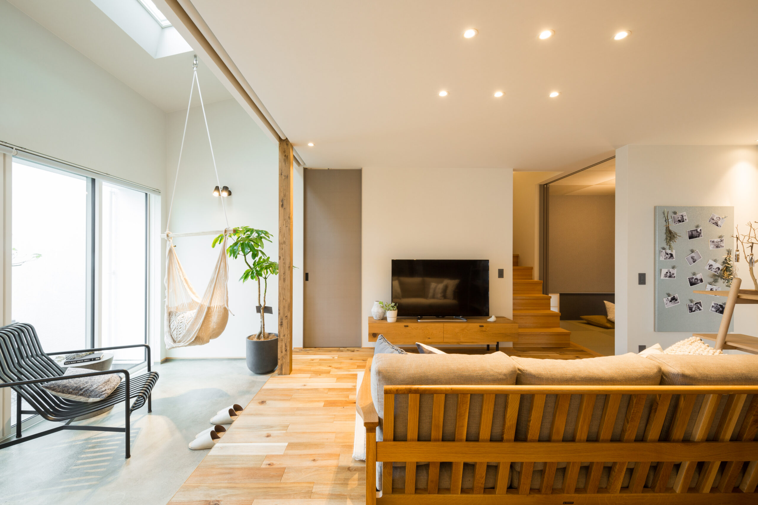 LDKの形に沿うように設けた大開口の窓からは心地よい光が入り、