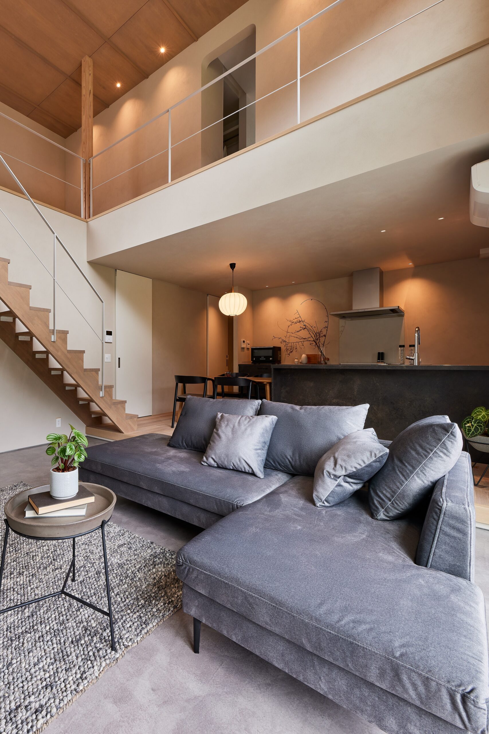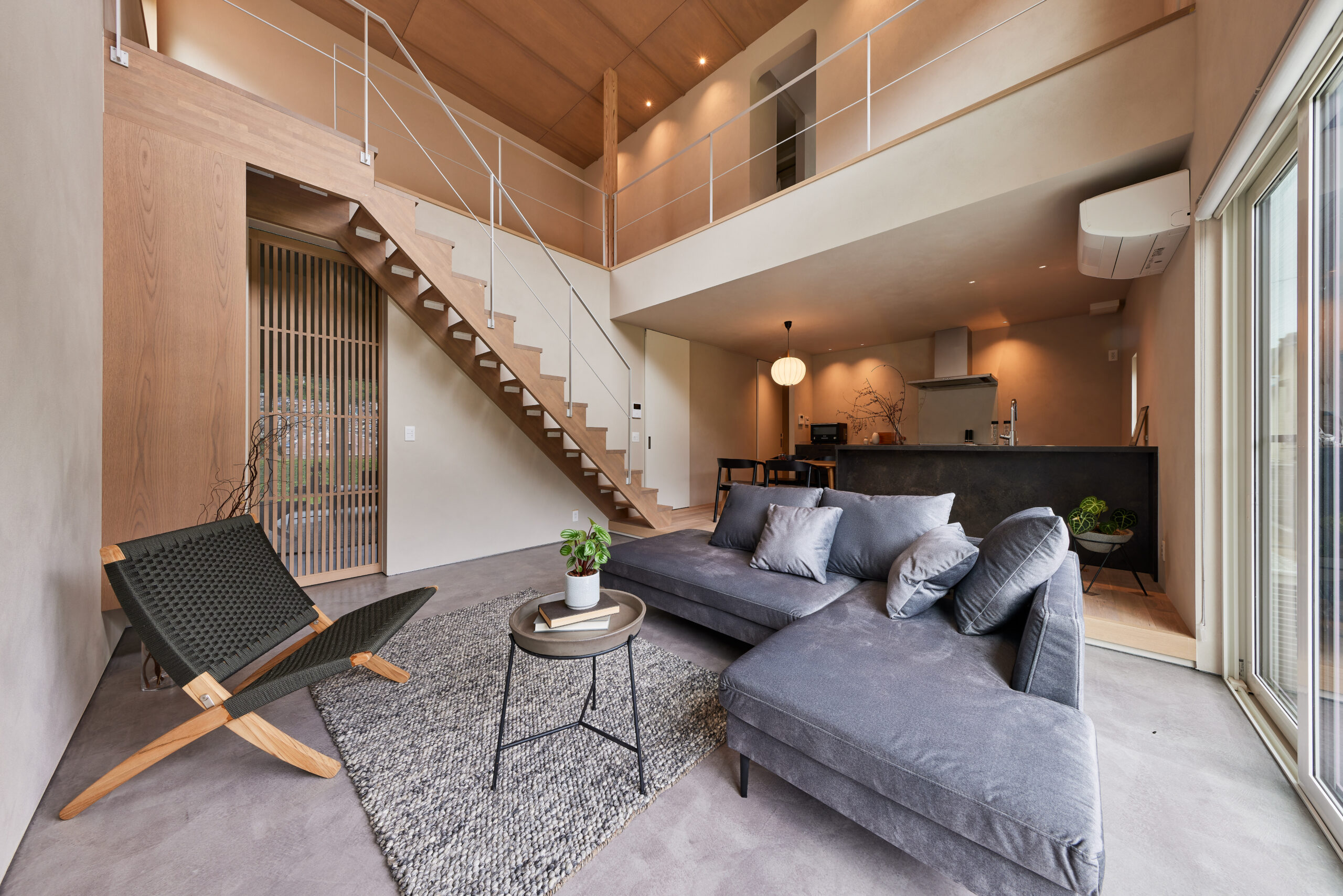 斜めの土間リビングがアクセントな開放感あふれるお家。